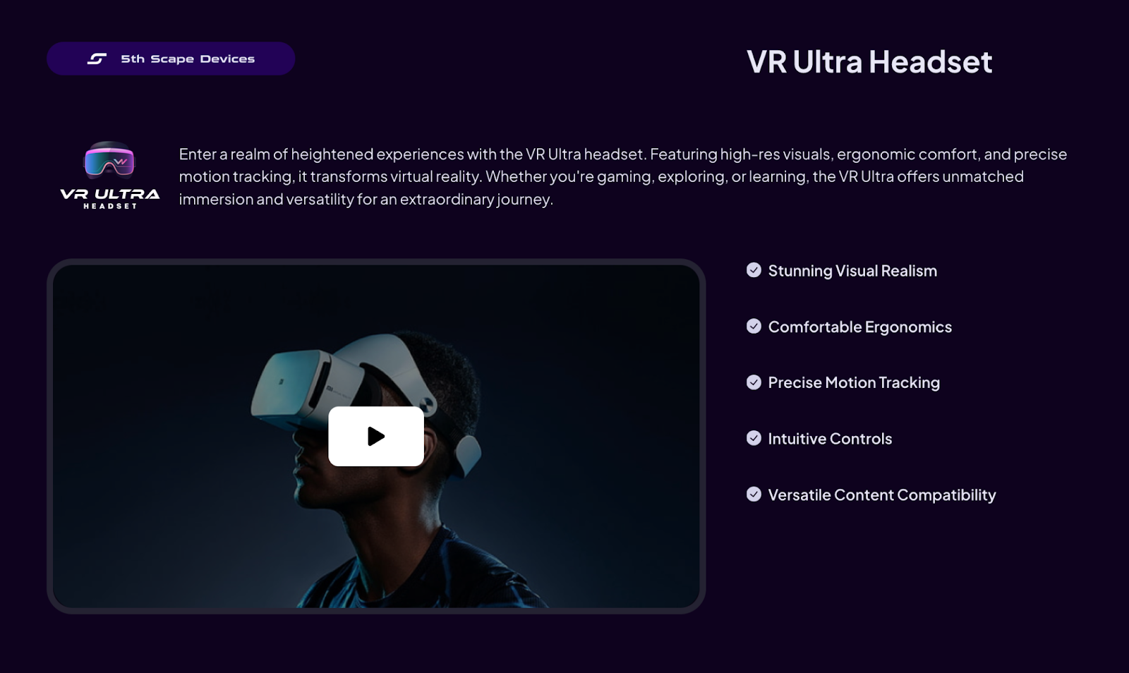 Met 5th Scape breekt een nieuw tijdperk in virtual reality aan. Terwijl de VR-markt zich verder ontwikkelt, streeft 5th Scape ernaar om zijn geïntegreerde ecosysteem te benutten voor het creëren van meeslepende werelden met aantrekkelijke geluiden.