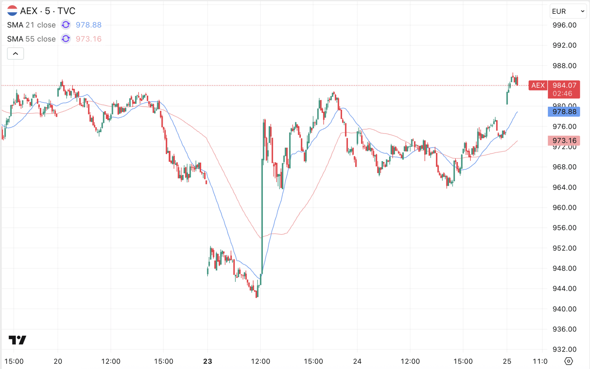 De AEX koers is vandaag met een flinke stijging begonnen en noteert op 984 punten. Die opleving van de koers is het gevolg van het 15-puntenplan dat de Verenigde Staten aan Iran voorlegde om een einde te maken aan de oorlog. Het is echter de vraag of Iran openstaat voor vrede. Aan de olieprijzen te zien twijfelt de markt daar nog sterk over.