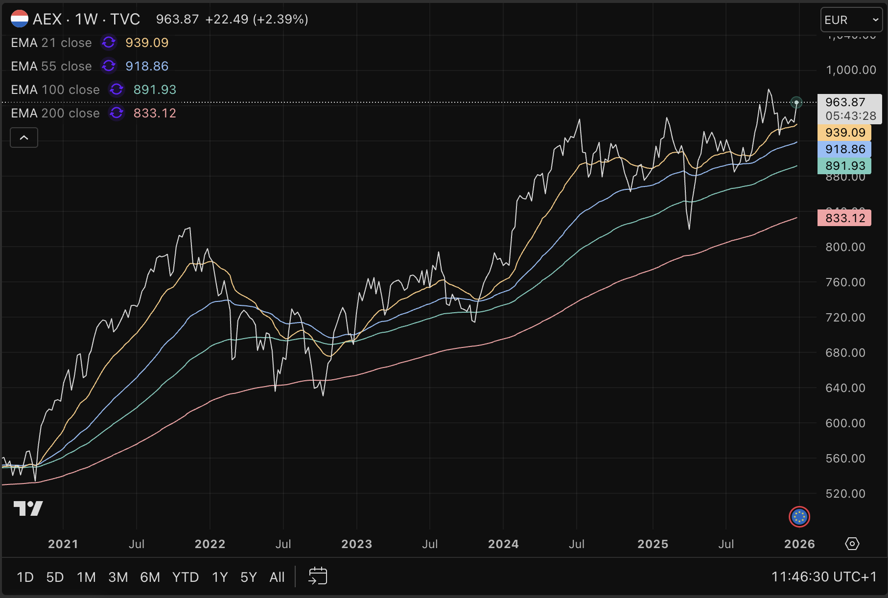 In oktober zagen we de AEX al richting de 1.000 punten stijgen, maar eindigde het feestje uiteindelijk op 985 punten. Daarna volgde afwijzing en verloren de bulls weer een stukje controle.