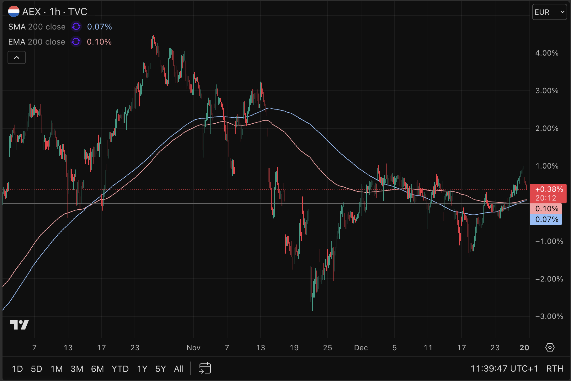 De AEX koers lijkt op oudjaarsdag met rode cijfers te sluiten. Op het moment van schrijven noteert de Nederlandse beursindex op 947 punten voor een daling van ongeveer 0,44 procent. Daarmee sluit de AEX het jaar alsnog met een bescheiden rendement van 7,78 procent af.