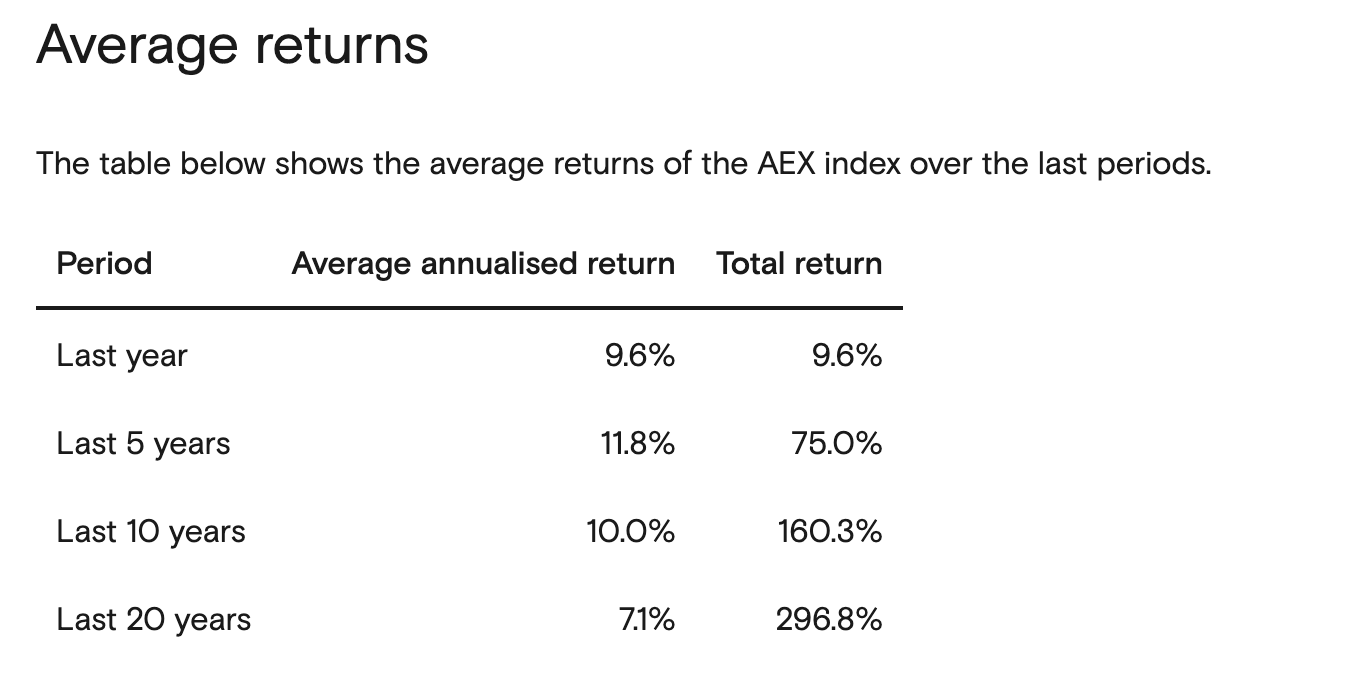 Met dat rendement van 7 procent was het voor de AEX een gemiddeld, tot tegenvallend jaar. Over de afgelopen 20 jaar wist de beurstrots van Nederland een rendement van 7,1 procent te scoren, terwijl de afgelopen 10 jaar met gemiddeld 10 procent een stuk sterker waren.