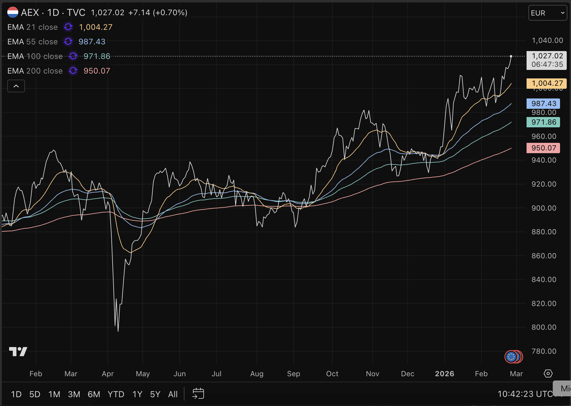 Hoewel de AEX een periode van zijwaartse koersactie kende in 2026, lijkt er nu sprake van een definitieve doorbraak door het niveau van 1.000 punten. Samen met veel andere beursindices zien we de AEX de afgelopen dagen weer ijzersterk presteren.