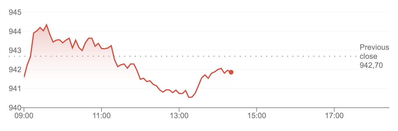 De AEX-index beweegt dinsdagmiddag rond de 944 punten, na eerder licht terrein te hebben prijsgegeven. Beleggers houden de hand op de knip, met name door de naderende feestdagen en het beperkte economische nieuws in de ochtend. De handel sluit woensdag vervroegd vanwege kerstavond, waarna donderdag en vrijdag de beurs dicht is.
