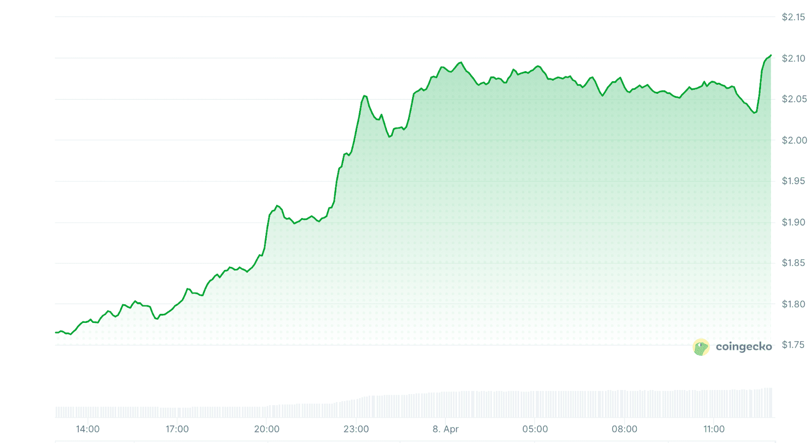 De eerste goed presterende token is Ethena (ENA). Het stablecoinprotocol steeg met bijna 14 procent naar een marktkapitalisatie van bijna 800 miljoen dollar.