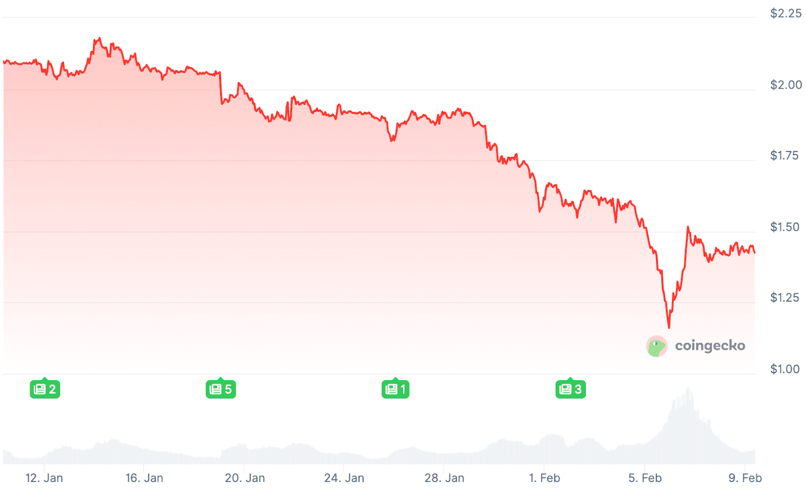 De XRP koers heeft de afgelopen tijd zware klappen opgevangen. Vorige week daalde de munt tot het laagste niveau sinds november 2024, met een dieptepunt van ongeveer 1,11 dollar. Inmiddels is de koers licht opgeveerd naar 1,38 dollar.
