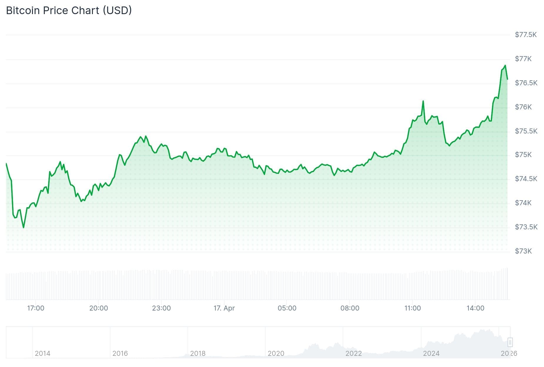 Bitcoin (BTC) is naar zijn hoogste koers sinds begin februari geknald. En het belangrijkste is dat het eindelijk is gelukt om de belangrijke grens van 76.000 dollar te doorbreken. Ineens is het erg hard gegaan en dat heeft alles te maken met de oorlog in het Midden-Oosten.