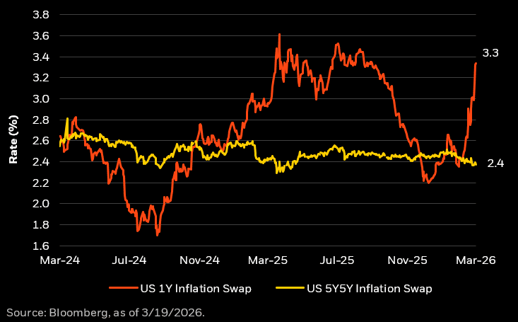 De oorlog in het Midden-Oosten zorgt voor grote angst over de wereldeconomie. Stijgende energieprijzen en verstoringen in de aanvoerketens hebben de inflatieverwachtingen op korte termijn flink opgedreven. Toch blijft de markt opvallend kalm als het gaat om inflatie op de langere termijn.