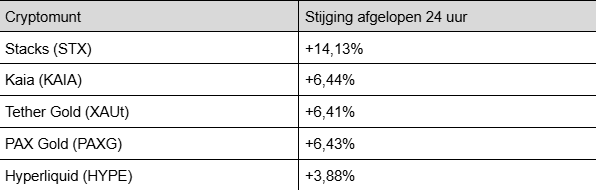 Hieronder de grootste top 100-stijgers van de afgelopen 24 uur: