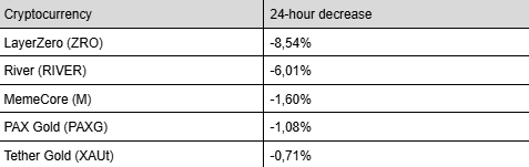 Hieronder de grootste top 100-dalers van de afgelopen 24 uur: