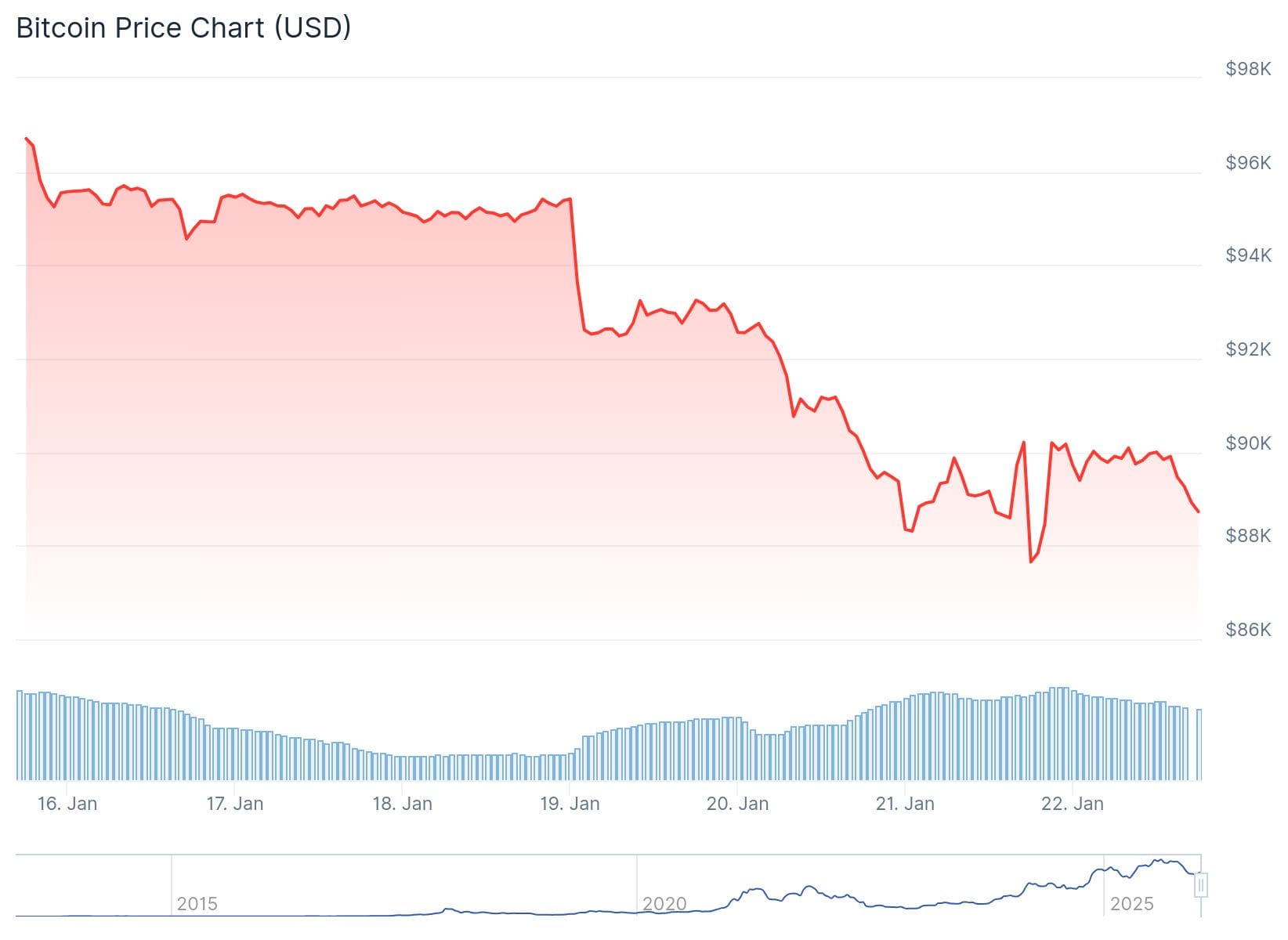 Als Bitcoin onder de 87.200 dollar duikt, zou het volgens analist Jelle verder kunnen dalen naar 80.000 dollar, waar het in november een bodem bereikte.