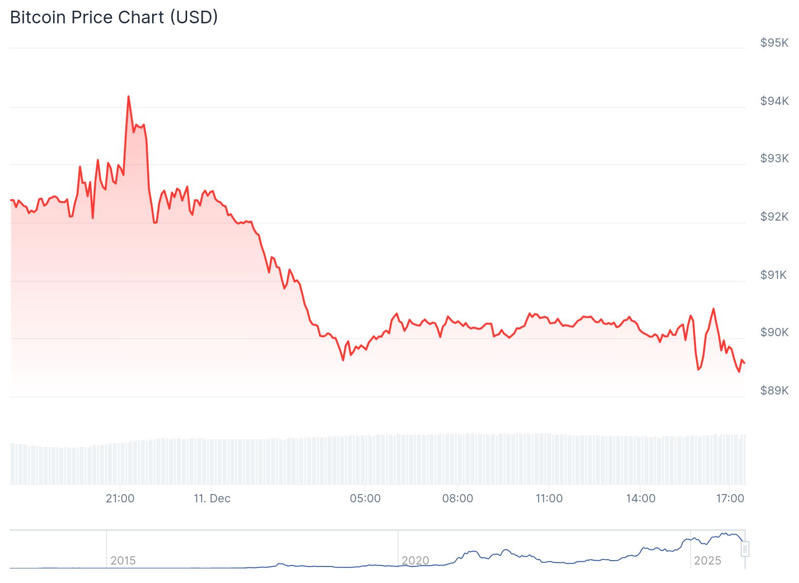 Op het moment van schrijven staat de Bitcoin koers op 89.423 dollar, 2,94 procent lager dan gisteren. In euro’s wordt er nu 76.117 betaald voor de grootste crypto.