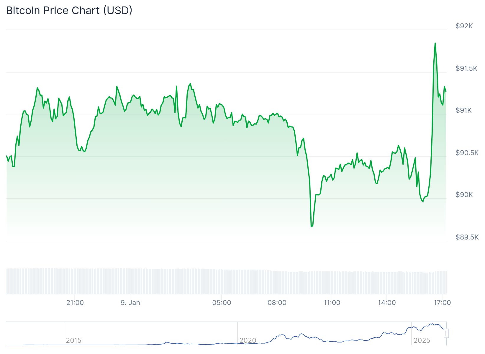 De Bitcoin koers reageerde nauwelijks op de nieuwe cijfers. Kort na het openen van de Amerikaanse aandelenbeurzen dook het nog wel kort onder de 90.000 dollar. Daarna is het in iets meer dan een halfuur tijd met ruim 2 procent gestegen naar een piek van 92.000 dollar.