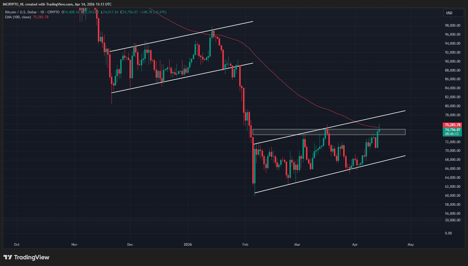 Op het moment van schrijven staat de BTC koers op 74.758 dollar, 3,89 procent hoger dan 24 uur geleden. In euro’s wordt er nu 63.403 betaald voor de oranje munt.