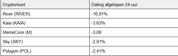 Tot slot de grootste top 100-dalers van de afgelopen 24 uur: