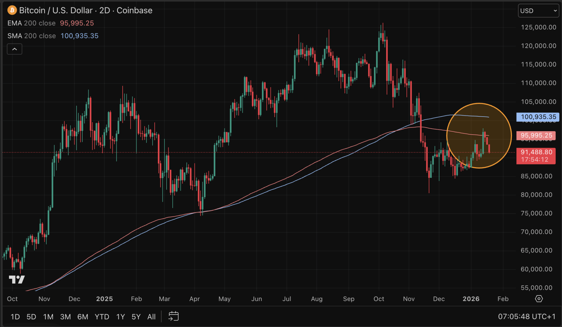 Dat zal pas veranderen als de rendementen gaan tegenvallen en met massaal winsten begint te realiseren. Als Bitcoin op dat moment een doorbraak weet te forceren, kan 2026 nog een gouden periode krijgen voor de digitale munt.