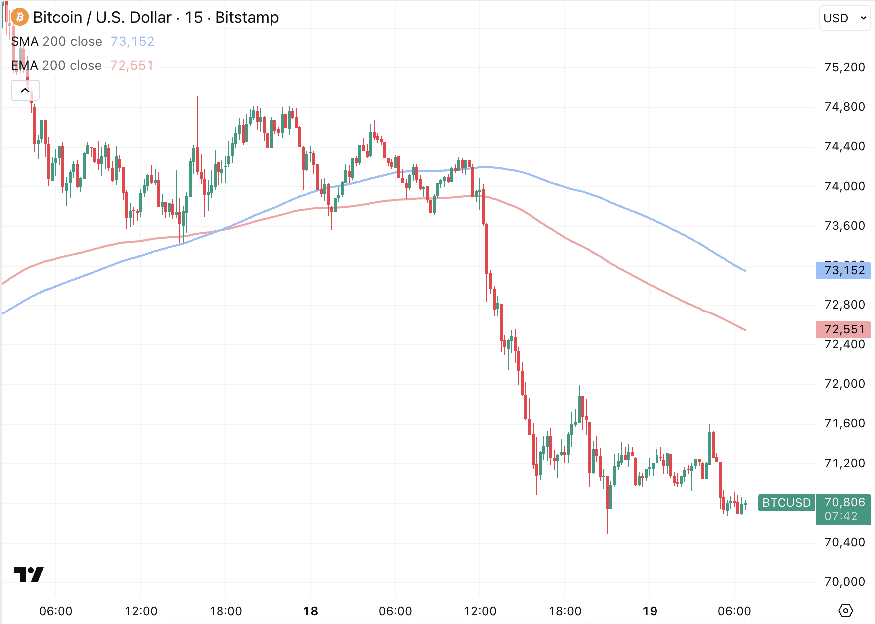 Eerder deze week zagen we Bitcoin nog naar 76.000 dollar stijgen. Dat was duidelijk een opleving van korte duur. Nu zijn we een aantal dagen verder en handelt de Bitcoin koers op 70.800 dollar.