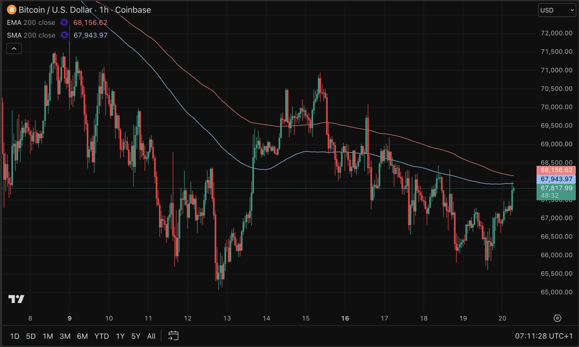 De Bitcoin koers lijkt er vandaag weer zin in te hebben. Over de afgelopen 24 uur staat er een stijging van ruim 1 procent, die de koers tot bijna 68.000 dollar brengt. Daarmee is er eindelijk weer iets van positief momentum zichtbaar voor Bitcoin. Dat is echter verre van voldoende om te spreken van een serieus herstel.