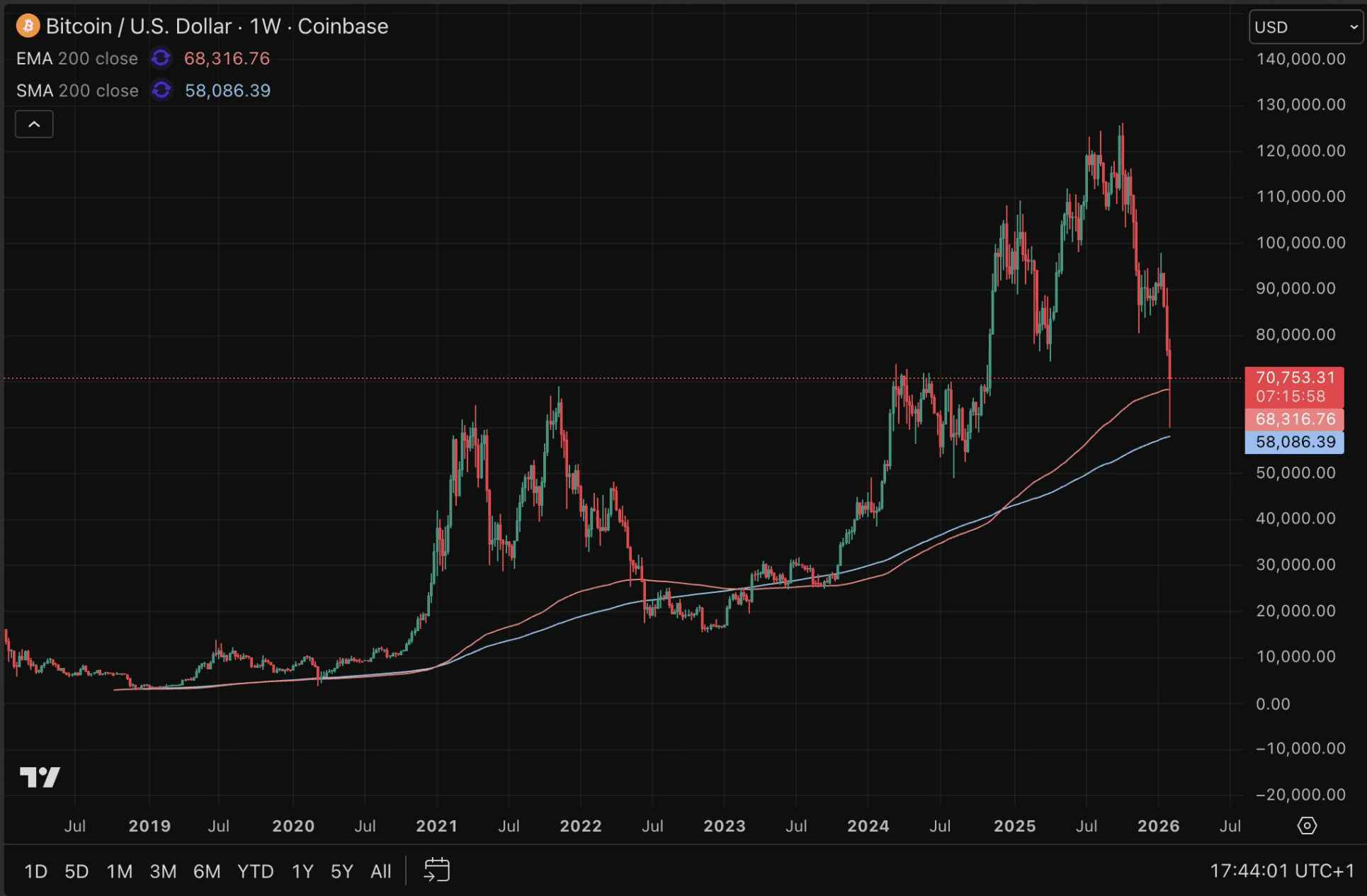 De Bitcoin koers gaat door een extreem lastige periode waarin twijfel overheerst. Terwijl Bitcoin in oktober nog een all-time high van 126.000 dollar noteerde, staat de koers inmiddels een ruime 50.000 dollar lager.