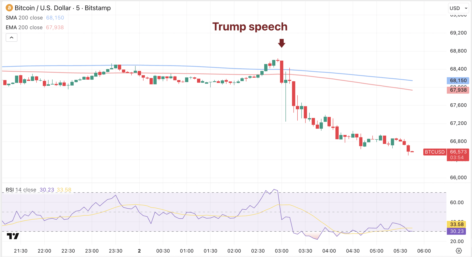 De Bitcoin koers daalde vannacht met 3 procent na een keiharde toespraak van Donald Trump. Vannacht gaf de president van de Verenigde Staten aan Iran “extreem hard” te zullen raken als er niet snel een deal komt. Dat is vreemd, omdat hij eerder nog beweerde dat de onderhandelingen zo goed verliepen. Als gevolg daarvan steeg de olieprijs met ruim 4 procent en hebben Bitcoin en andere risicobeleggingen het lastig.