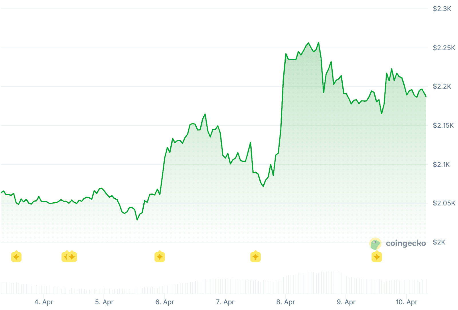 Ethereum liet een vergelijkbare beweging zien en steeg van ongeveer 2.050 dollar naar bijna 2.200 dollar. Dat is goed voor een stijging van 6,3 procent. Op het hoogtepunt tikte de digitale munt zelfs ruim 2.270 dollar aan. Dat komt neer op een toename van ongeveer 10,5 procent.