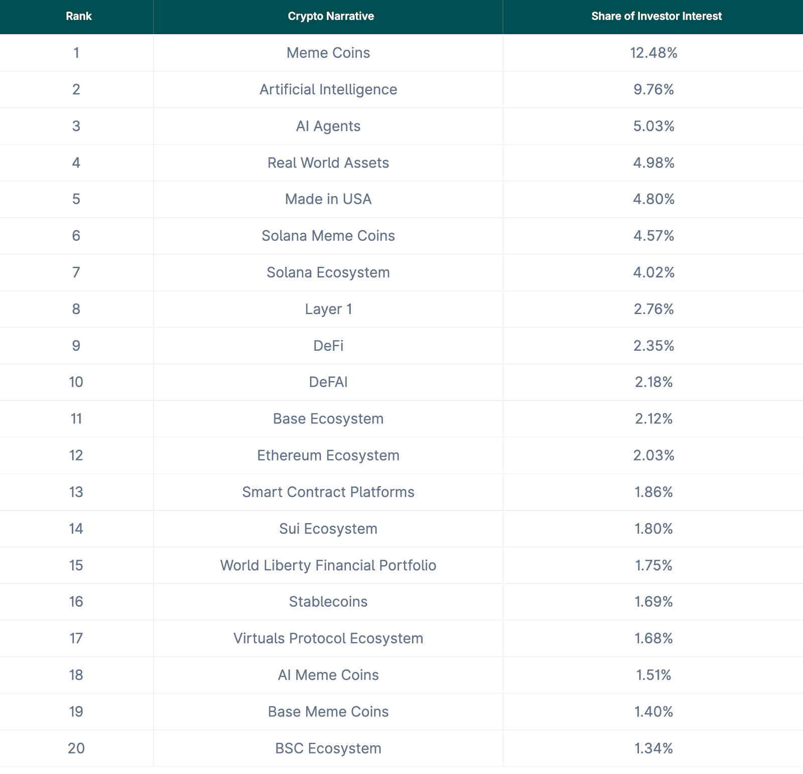 Meta description: CoinGecko onthult de top crypto-narratieven van 2025. AI en memecoins stijgen, maar gaming en Layer 2’s vallen weg.