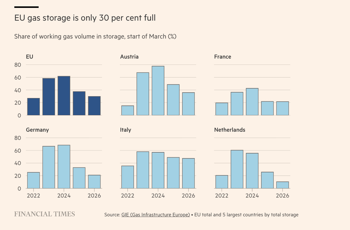 De situatie wordt extra zorgwekkend door de lage gasvoorraden in Europa.