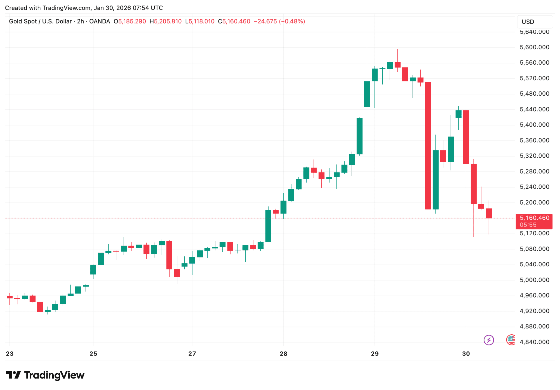 De goudprijs zakte in 24 uur tijd met vijf procent tot circa 5.150 dollar per troy ounce, waarmee een indrukwekkende rally van bijna twee weken abrupt werd doorbroken. Zilver kreeg nog hardere klappen en daalde zelfs met meer dan acht procent.