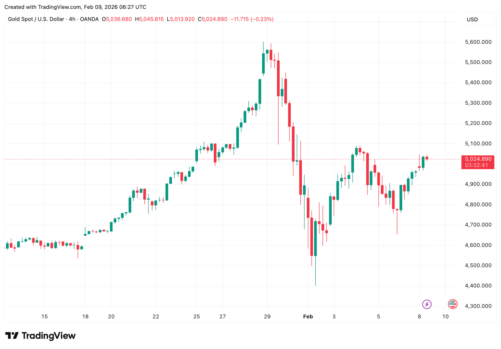 Na een sterke rally eind januari kreeg goud een zware klap. De prijs zakte in korte tijd fors weg vanaf een recordniveau, waarbij een groot deel van de eerdere stijging in enkele dagen werd uitgewist. Begin februari vond de goudprijs vervolgens een bodem, waarna het herstel werd ingezet.
