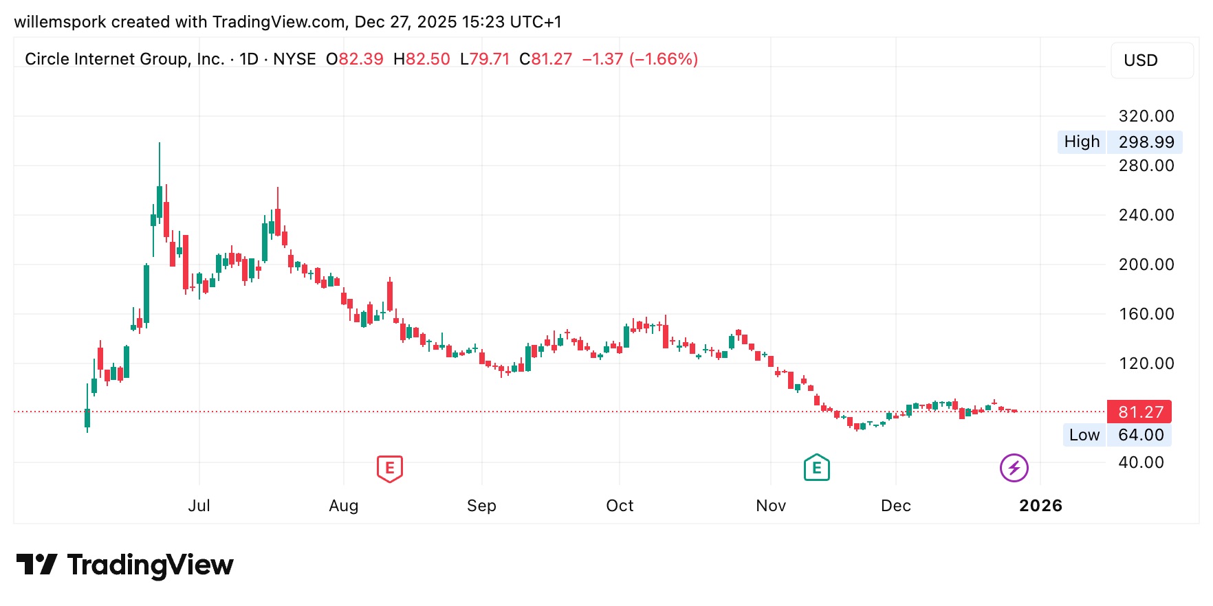 Circle is interessant omdat het de stablecoin USDC beheert en daarmee op het kruispunt zit van traditionele financiën en crypto. De beursgang in juni was extreem volatiel. Het aandeel ging rond 31 dollar naar de beurs, schoot binnen enkele weken door naar 260 dollar en zakte daarna terug naar rond 73 dollar. Toch blijft Circle met een market cap van net boven de 17 miljard dollar een van de grootste nieuwkomers van het jaar. Voor beleggers is het ook een signaal dat stablecoins niet langer een niche zijn, maar steeds meer een serieuze bouwsteen van digitale betaalnetwerken.