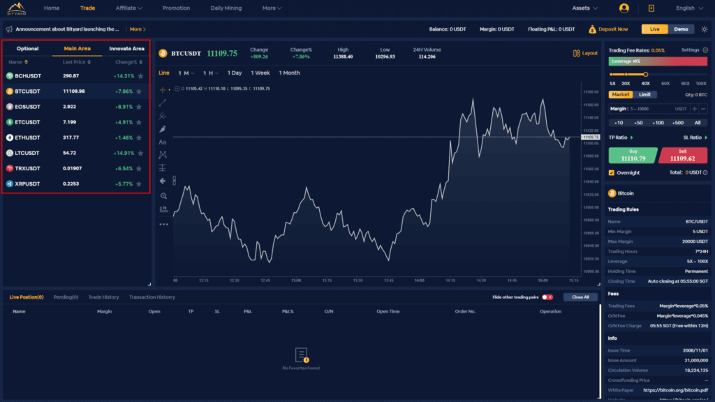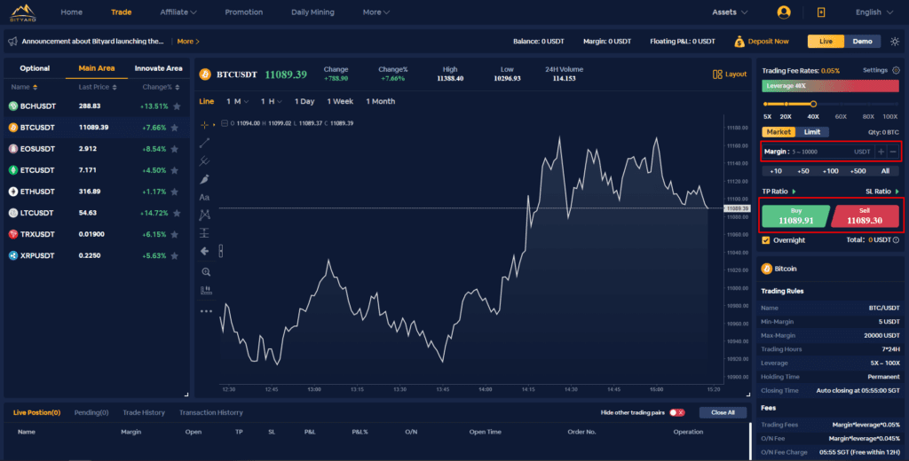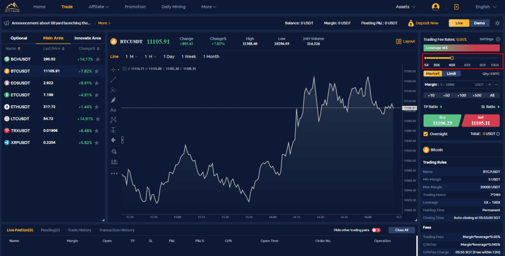 Ben je nog niet helemaal zeker hoe de exchange werkt, of wil je testen of leverage traden iets voor jou is? Bityard biedt een demo-versie aan waardoor je alles op je gemakt uit kan testen zonder dat je geld verliest.