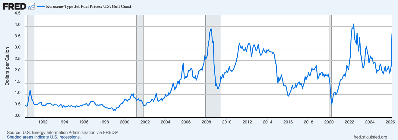 Een concreet voorbeeld laat zien hoe snel het gaat. Een vlucht van Dubai naar Londen die eerder ongeveer vier ton kostte, kan nu oplopen tot ruim vijf ton. Het verschil zit volledig in de brandstofkosten.