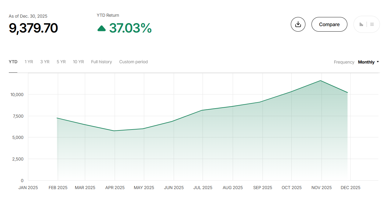 De MSCI Blockchain Economy Index heeft in 2025 een opvallend sterk jaar neergezet. De index steeg met 37 procent, het beste resultaat sinds 2023, en liet daarmee zowel de bredere aandelenmarkt als de cryptomarkt duidelijk achter zich.