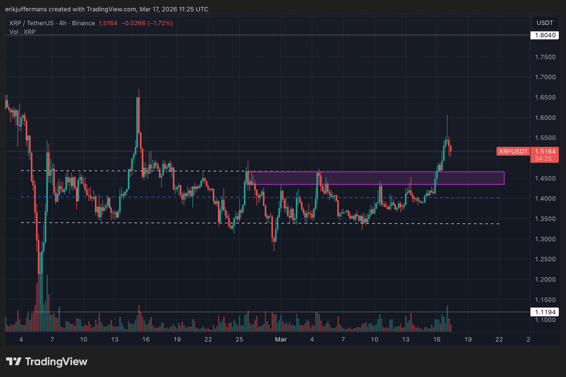 Gisteren brak XRP door de bovengrens van 1,45 dollar heen en tikte vandaag zelfs 1,60 dollar aan. Inmiddels trapt de koers op de rem en handelt rond 1,50 dollar. Wat kunnen we nu verwachten?