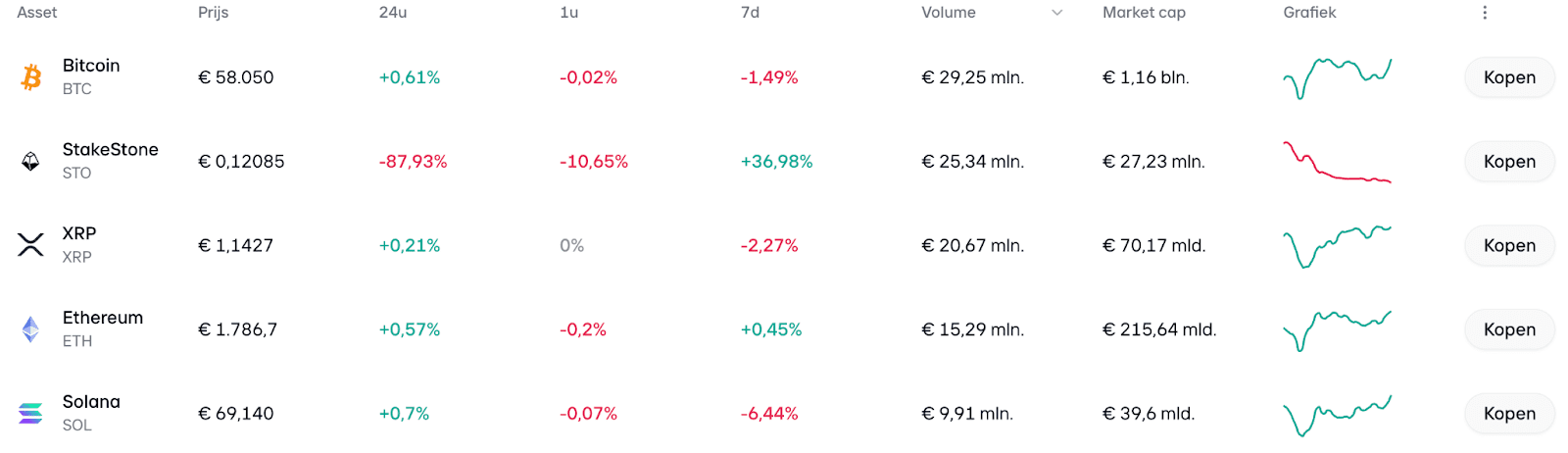 Op crypto-exchange Bitvavo domineren normaal gesproken grote namen zoals Bitcoin (BTC), Ethereum (ETH) en XRP het handelsvolume. Toch is daar nu plots verandering in gekomen. Een relatief onbekende altcoin staat onverwacht op de tweede plek. Wat speelt hier?