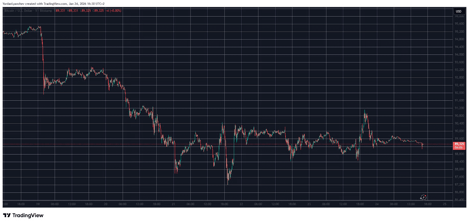 De druk op Bitcoin-ETF’s is deze week opnieuw toegenomen en versterkt het argument dat het institutionele vertrouwen op korte termijn afneemt. Bitcoin noteert momenteel rond de $89.206, na zijn onvermogen om de mentale grens van $90.000 te doorbreken. Ook de Verenigde Staten dragen bij aan de volatiliteit met dreigende invoertarieven, en zelfs indirecte geopolitieke uitlatingen hebben heftige reacties in de cryptomarkt veroorzaakt.