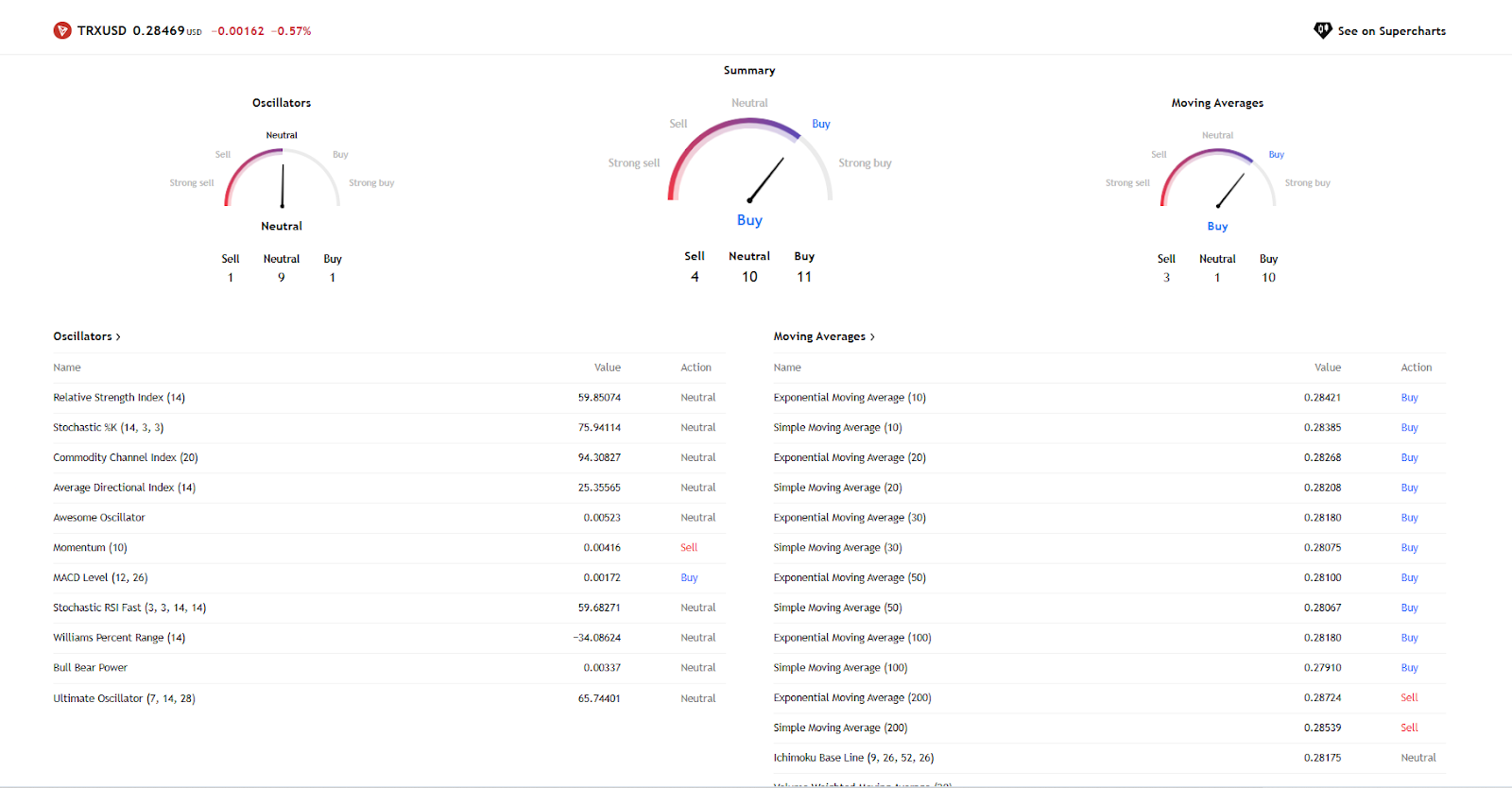Als dat lukt, zou dit niveau kunnen dienen als lanceerplatform voor een forse stijging, wat TRX tot een interessante koopoptie maakt. Bovendien tonen technische indicatoren aan dat de bulls momenteel de overhand hebben.