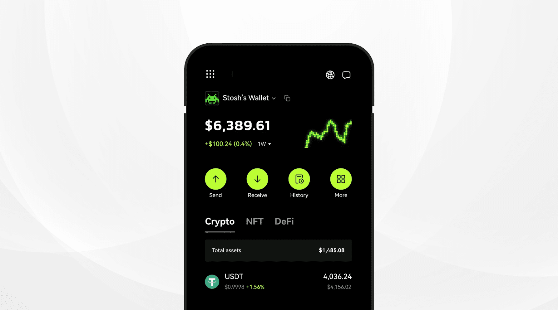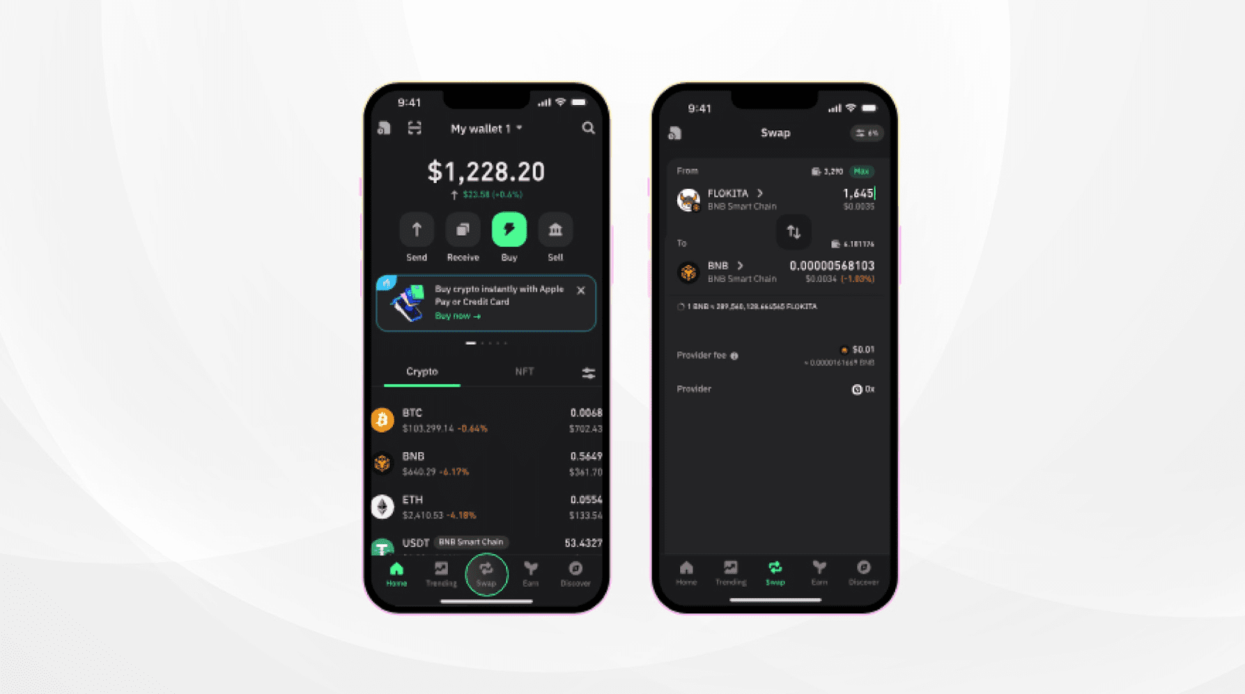 - Ingebouwde fiat gateway: je moet de app niet hoeven verlaten om crypto te kopen. De wallet moet direct je bankpas, Apple Pay of een bankoverschrijving (IBAN) accepteren.
