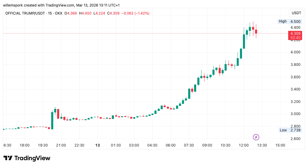 De TRUMP koers steeg in korte tijd tientallen procenten. Volgens marktdata noteert de token inmiddels rond 4,3 dollar, terwijl het handelsvolume explosief toenam. Vooral grote investeerders lijken massaal tokens op te kopen om in aanmerking te komen voor het exclusieve evenement.