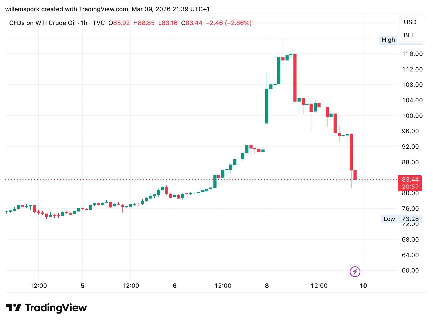 Analisten spreken inmiddels van een historische beweging. De daling van de olieprijs weerspiegelt hoe snel het sentiment rond het conflict in het Midden-Oosten kan omslaan.