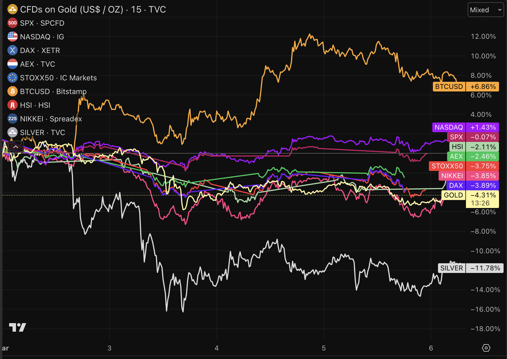 De Bitcoin koers maakt een hele bijzondere week mee. Terwijl veel andere assets door het putje gaan, lijkt Bitcoin plotseling het momentum te hervinden. Hoewel de koers ten opzichte van de top van gisteren iets is teruggevallen, blijft er een indrukwekkend resultaat staan.