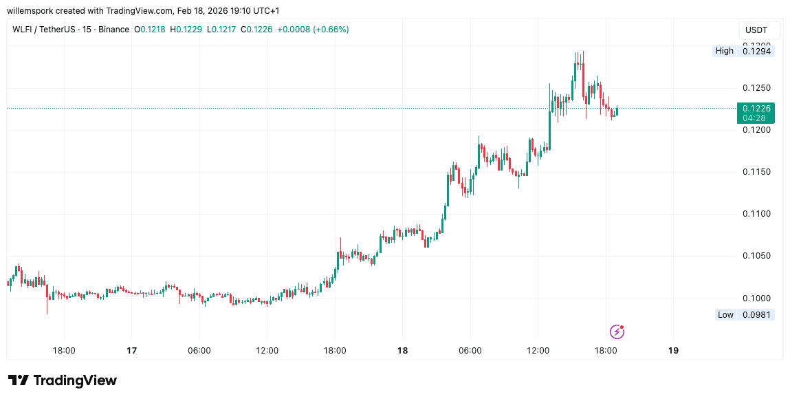 De WLFI koers is in de afgelopen 24 uur met zo’n 19 procent gestegen. Daarmee is het een van de best presterende tokens van dit moment.