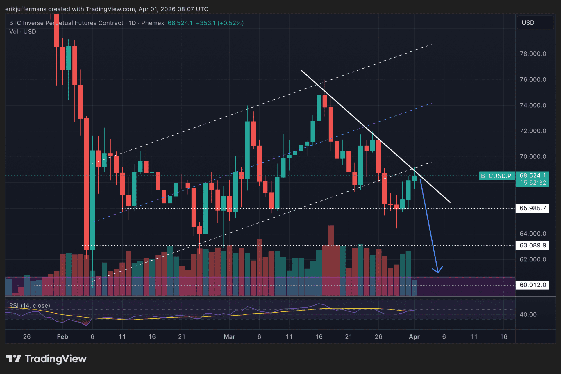 Toch plaatst Newsbit analist Juffermans een belangrijke kanttekening. Altcoins bewegen in de meeste gevallen mee met Bitcoin (BTC). Het komt zelden voor dat altcoins langdurig tegen de richting van BTC ingaan.
