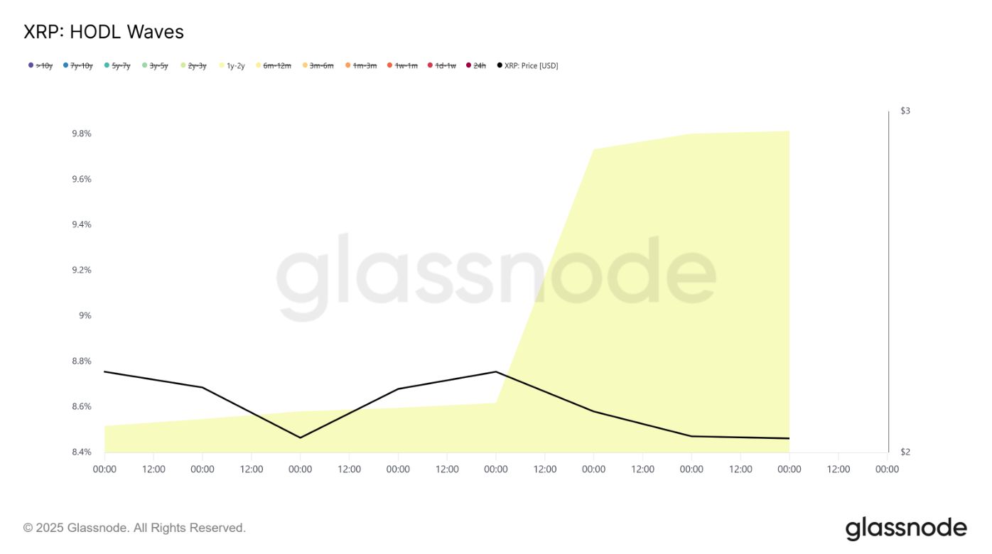 Tegelijkertijd is er ook een groep investeerders die juist vasthoudt aan hun XRP. Gegevens laten zien dat het aandeel XRP dat al één tot twee jaar wordt aangehouden de afgelopen week is toegenomen. Dit wijst erop dat veel beleggers nog steeds vertrouwen hebben in de langere termijn.